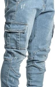 Jeans pour Homme Pantalon Denim Slim Fit Jean Vetement De Survêtement Jeans Coton Denim de Couleur Pantalon de Travail Hip-hop délavé Vintage Bleu L